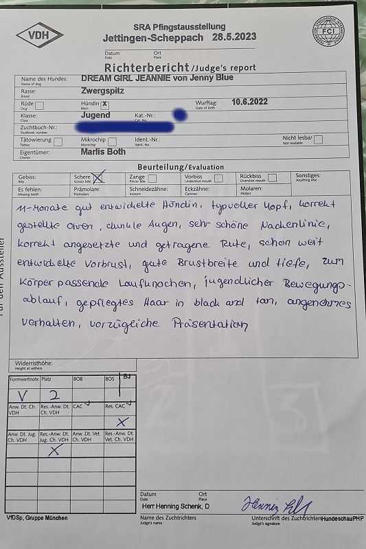 Jeannie (Jugendklasse) V2 Reserve CACJ, Reserve Dt. Jug. Ch. VDH